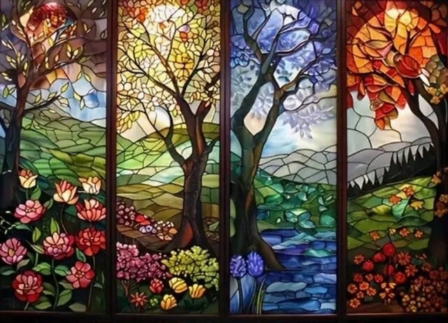 Vier Seizoenen Bomen Rond 40x50